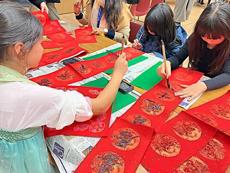 Lantern decorations in the front entrance, hallway and library were hung from the middle of January, and a week of lunchtime activities for Primary students was planned by Secondary students from our Home Language Club. A Lion-Dance group was formed, traditional Korean songs were planned, and rehearsals began. In addition to library riddle games, the Home Language Club also organized a special daily menu featuring different country-specific food for the week. From the moment students walked into school, they could sense the excitement!